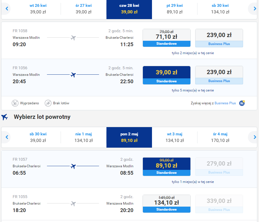 Szczegóły tanich lotów z Warszawy Modlin do Brukseli Charleroi: